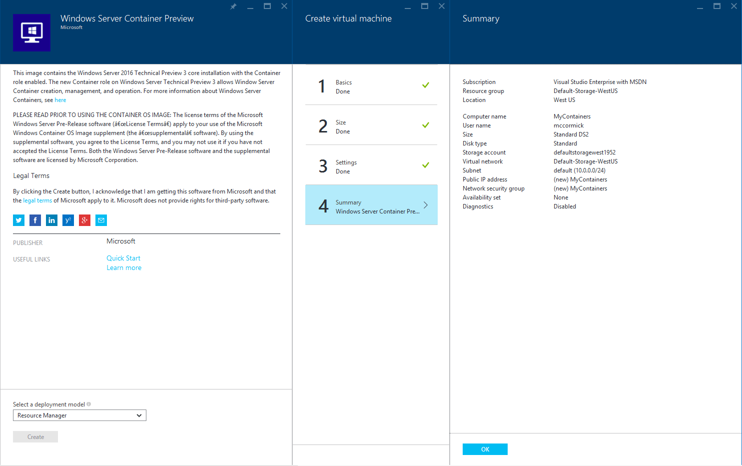 The server should be running Windows Server 2016 Technical Preview 3 (or higher) Core with the Container role enabled. I used Azure's "Windows Server Container Preview" VM for this tutorial, which luckily has the Host OS all setup for me. * A quick note for anyone who hasn't used Windows Server Core before: Open Task Manager and use File--Run New Task to get new CMD windows. At this point, you should also create a new directory structure in your VM: C:\mssql\install\registrykeys
